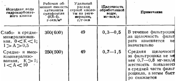 Разработанная Н. П. Субботиной технология Н-катионирования с «голодной» регенерацией предназначена для обработки природных вод гидрокарбонатного класса. В гидрохимии к водам этого класса принято относить воды, в которых из числа главных анионов (SO42-, С1~, НСО3-) наибольшую концентрацию, выраженную в мг-экв/л, имеет ион НСО3-. Воды около 80% рек России принадлежат к гидрокарбонатному классу.