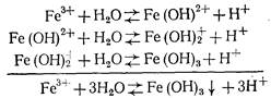 Гидролиз солей железа (III) протекает полнее, чем солей алюминия, и значительно полнее, чем солей железа (II).