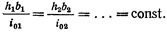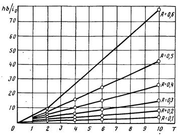Потеря напора в любом фильтрующем слое и ее прирост зависит от толщины слоя. Однако, при достаточно большой толщине слоя прирост потери напора будет определяться только распределением осадка по толщине слоя во времени. Такой слой работает в автомодельной области. Рассмотрим закономерности изменения потери напора в слоях, работающих в автомодельной области. Умножив левую и правую части равенств (12.35) на параметр bи разделив на i0 ,получим