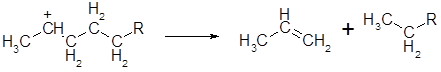 Варто розглянути основну реакцію каталітичного крекінгу – розрив простого вуглець-вуглецевого зв’язку згідно йонної схеми.