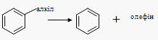 Алкілароматичні вуглеводні → олефін + ароматичні вуглеводні