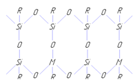 Rn Si(OH)4- n + y M(OH)x → {RSi(O)4- n /2 MOx /2 }n + 4- n /2 H2 O(1)