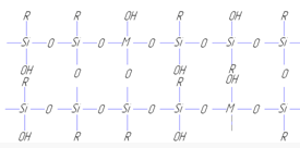 Полимеры состава [(RSiO1.5 )m MOm /2 ] имеют незавершенную циклолинейную структуру и в зависимости от метода получения и условий синтеза способны переходить в нерастворимое состояние [8].