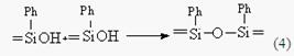 Затем протекает ряд параллельных и конкурирующих реакций. В дальнейшем может протекать гомоконденсация силанольных групп с образованием фенилсилоксановых фрагментов: