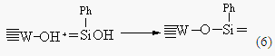Устойчивыми в водно – органических средах являются так же тринатровые соли фенилсилантриола (ТНФС). Их использование предполагает получение полигетеросилоксанов с более высоким содержанием вольфрама, кроме того, позволяет варьировать соотношение кремния к вольфраму, так образование силоксановой связи легко протекает по схеме (4).
