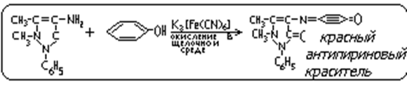 Реакция фенола с 4-аминоантипирином протекает по схеме: