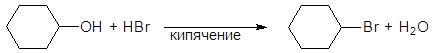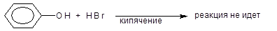 Углерод-кислородная связь в фенолах гораздо прочнее, чем в спиртах. Например, фенол не может быть превращен в бромбензол действием на него бромоводорода, тогда как циклогексанол при нагревании с бромоводородом легко превращается в бромциклогексан: