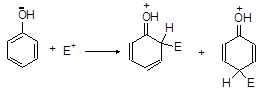 Оксигруппа фенола очень сильно активирует ароматическое кольцо по отношению к реакциям электрофильного замещения. В качестве промежуточных соединений вероятнее всего образуются оксониевые ионы: