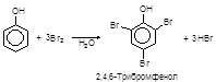 Высокая реакционная способность фенола приводит к тому, что даже при его обработке бромной водой происходит замещение трех атомов водорода: