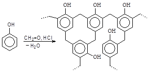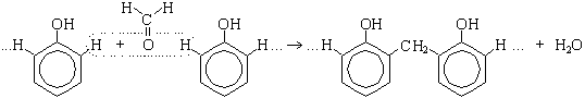 Поликонденсация фенола с формальдегидом (по этой реакции происходит образование фенолформальдегидной смолы: