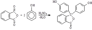 В парисутствии серной кислоты или хлорида цинка фенол конденсируется с фталевым ангидридом с образованием фенолфталеина: