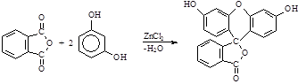При сплавлении фталевого ангидрида с резорцином в присутствии хлорида цинка происходит аналогичная реакция и образуется флуоресцеин:
