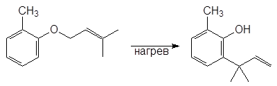 Этот же продукт образуется и при нагревании аллилфенилового эфира в результате внутримолекулярной реакции называемой перегруппировкой Кляйзена: