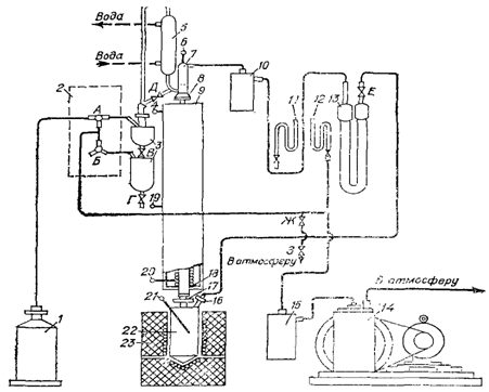 Состав фракций нефти, кипящих до 100°, известен довольно точно. Вследствие большого числа изомеров полный анализ фракций, кипящих выше 100°*, невозможен, хотя отдельные простейшие ароматические углеводороды еще могут быть идентифицированы. Чтобы определить относительные количества парафинов, нафтенов и ароматических углеводородов в высших фракциях нефти, обычно пользуются методом Уотермена [4]. По этому методу сначала находят содержание ароматических углеводородов гидрированием или определением анилиновой точки; после гидрирования находят по удельному весу и показателю преломления соотношение между нафтенами и парафинами. Метод Уотермена не дает возможность определять абсолютное количество углеводородов; тем не менее он является наилучшим из всех разработанных методов.