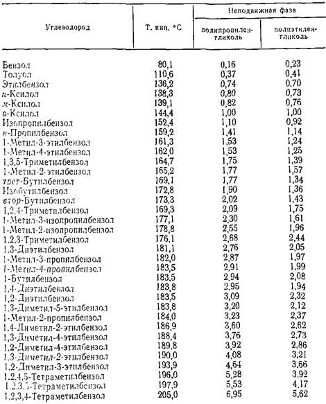 Таблица 4.7. Относительное время удерживания аренов С6 —С10 на разных неподвижных фазах