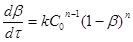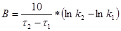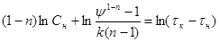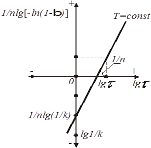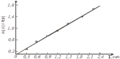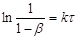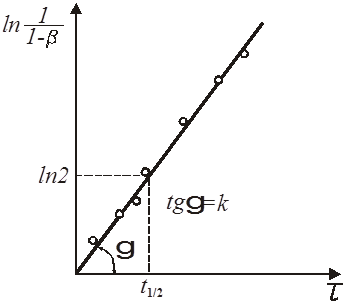 В останню графу заноситься константа швидкості, отримана як результат розподілу кожної величини β i на максимальне значення β max (відповідне максимальній температурі). За отриманим значенням Квідн будують графік, аналогічний показаному на рис. 15 і розраховують Е и k 0.