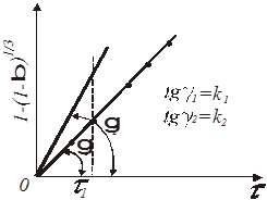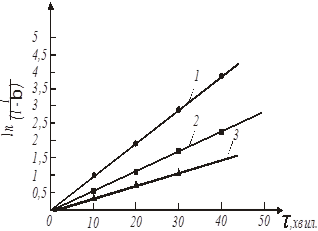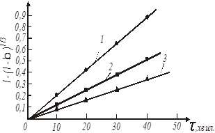 На підставі графічних залежностей ступеню перетворення початкової речовини від часу τ (рис. 16) визначаємо швидкість процесу: