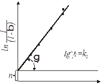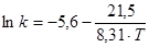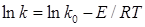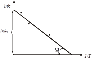 Графічна залежність ln k = f(1/T) (мал. 20) дозволяє визначити чисельне значення ln k0 енергії активації по формулі 49: