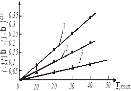 За даними таблиці будуємо кінетичні криві для заданих температур 1 - 20 0 С, 2 - 55 0 С і 3 - 85 0 С відповідно (рис. 16).