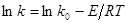 ln k20 = ln 0,02= -3,91 ln k55 = ln 0,045= -3,1 ln k85 = ln 0,11= -2,21