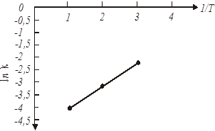 Для визначення енергії активації будуємо графічну залежність lnk від 1/Т (рис.17).