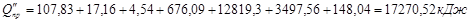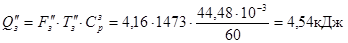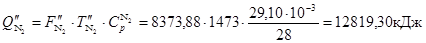 Кількості тепла на нагрівання повітря в кільцевому просторі печі: