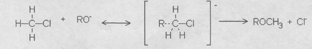 Скорость реакции, протекающей через переходное состояние, пропорциональна концентрации каждого из реагентов. Следует полагать, что и реакция целлюлозы с хлористым метилом происходит по указанной выше схеме, т. е. является бимолекулярной реакцией нуклеофильного замещения –SN 2.