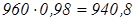 1000×0,96=960 кг,