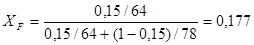XCP . B = (XP +XF )/2 = (0.177+0.975)/2 = 0.576 кмоль/кмоль смеси