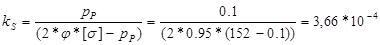 Sp =0,1*1,4/(2*0,9*152-0,1)=0,000511 м