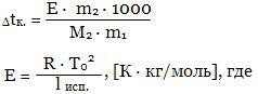 Величина Е численно равна повышению tк моляльного раствора при условии сохранения свойств раствора до этой концентрации.