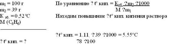 В 100 г. этилового спирта растворено 39г. бензола С6 Н6 , рассчитайте повышение температуры кипения этого раствора, если эбуллиоскопическая константа спирта равна 1,11ºС.