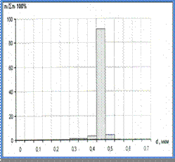 Сортируя по размерам диаметра глобул полистирола необходимо отметить особенности данного распределения.