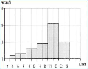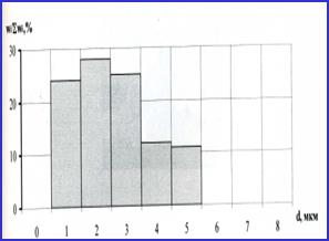 Рис. Дисперсный состав эмульсий стирола, полученный в присутствии МАФ-3 степени конверсии: р = 12%