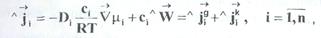где mi, - мольная масса компонента i, кг/кмоль, сi, - мольная концентрация, кмоль/мэ. Отметим, что конвективная скорость и потоки рассматривались в лабораторной системе отсчета, т.е, относительно системы отсчета, связанной с аппаратом. В условиях гидромеханического равновесия конвективная скорость относительно аппарата является не просто постоянной, а нулевой величиной.