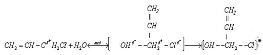 Реакция протекает в две стадии; сначала образуется хлористый аллил, а затем аллиловый спирт.