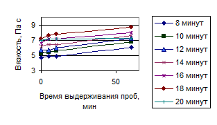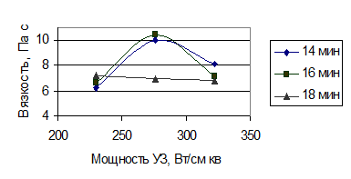 Установлено, что увеличение вязкости экстракта симбатно нарастанию мощности ультразвукового воздействия до определенного предела (оптимума). Дальнейшее увеличение мощности приводит к деградации полисахаридных цепей.