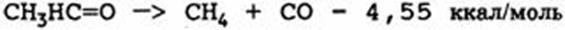 Эта реакция, а также реакция разложения ацетальдегида с образованием двух молей постоянных газов обсуждаются в работе: