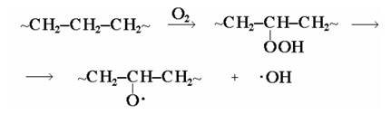 2) При окислении полимеров на воздухе с последующим разложением гидропероксидных групп при нагреве: