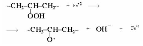 Разложение гидропероксидных групп в макромолекуле возможно в присутствии восстановителя: