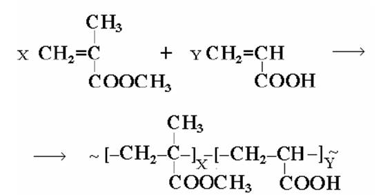 Например, метилметакрилат сополимеризуют с небольшим количеством акриловой кислоты и получают сополимер, содержащий в макромолекулах небольшое число карбоксильных групп: