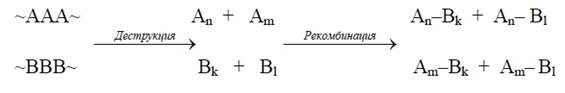 При механических воздействиях на полимер (вальцевание, экструзия, действие ультразвука, гидравлический удар и др.) макромолекулы разрываются с образованием активных осколков цепей (главным образом радикальной природы). Механической деструкцией смеси двух гомополимеров получают макрорадикалы с различными звеньями А и В. Затем в результате рекомбинации различных по природе макрорадикалов получаются блоксополимеры: