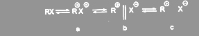 Молекула исходного соединения может диссоциировать с образованием контактной ионной пары (а), сольватно – разделённой ионной пары (b) и диссоциированных сольватирорванных ионов (с). В контактной ионной паре ассиметрия в значительной мере сохраняется, а потому нуклеофильная атака приводит к обращению конфигурации. При атаке сольватно – разделённой ионной пары селективность снижается, что приводит к общей рецемизации. Если образуется свободный радикал, то рецемизация должна быть полной. Обычно обращение конфигурации при механизме SN 1 составляет от 5 до 20%.