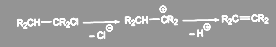 В случае молекулярного замещения может протекать ряд побочных процессов, протекающих через стадию образования иона карбения, в частности элиминирование (Е1):