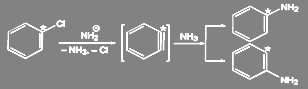 Идентичность соседних положений при отсутствии других заместителей в ядре объясняется тем, что реакция идет по механизму отщепления-присоединения (кинезамещения) через стадию образования 1,2-дегидродензола: