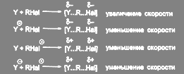 В зависимости от природы галогена порядок реакционной способности алкилгалогенидов в реакциях нуклеофильного замещения оказывается следующим: RI> RВr> RСI> RF. Иное положение наблюдается для является не переходным состоянием, а промежуточным соединением. Величина положительного заряда у реакционного центра зависит не только от количества, расположения и природы других заместителей в ядре, но и от природы замещаемого галогена. Поэтому в активированных ароматических системах атомы галогена могут быть замещены с возрастающей легкостью в ряду I < Вr < СI < F.[13]