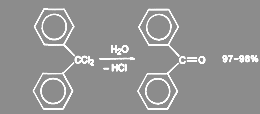 Дигалогенпроизводные, у которых оба атома галогена связаны с одним углерода, образуют альдегиды или кетоны. Таким образом получают, например, бензофенон: