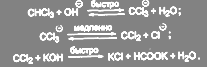Хлороформ при обработке основанием гидролизуется быстрее, чем дихлорметан или тетрахлорметан и образует не только муравьиную кислоту, но и монооксид углерода.Считают, что реакция протекает через стадию образования дихлоркарбена: