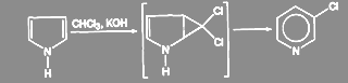 Дихлоркарбен является очень реакционноспособным соединением. Его промежуточным образованием объясняется целый ряд реакций. Так, например, пятичленные гетероциклы (индол, фуран, тиофен, а также их производные) присоединяют дихлоркарбен с последующей перегруппировкой и ароматизацией полученного продукта, превращаясь в соответствующие 3-хлорзамещенные шестичленные гетероциклические соединения: