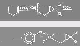 Аналогичные реакции присоединения дихлоркарбена известны в ряду сопряженных олефинов, например у циклопентадиена: